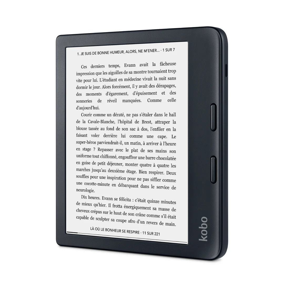 La Kobo Libra 2 de nouvelle génération est l’incarnation de votre style de lecture. Dotée d’une plus grande capacité de stockage, d’un écran E Ink plus rapide et de la technologie sans fil Bluetooth® pour vous permettre d’écouter des livres audio Kobo*, la liseuse Kobo Libra 2 est indispensable à vos nombreuses lectures. Riche en fonctionnalités et en caractère, et disposant d’une capacité de 32 Go pour tous vos eBooks, Kobo Libra 2 a été conçue pour accomplir davantage. Son design ergonomique vous offre un plaisir de lecture permanent, tandis que ses boutons pour tourner les pages vous aident à suivre l’histoire pendant que vous sirotez votre café, préparez votre sauce tomate préférée ou allaitez votre nouveau-né, pour pouvoir lire plus longtemps, en toutes circonstances. Personnalisez votre Kobo Libra 2 en faisant votre choix entre les modèles noir et blanc et les couleurs éclatantes du SleepCover. Nous avons conçu votre Kobo Libra 2 en gardant à l’esprit votre passion pour la lecture et votre vie. Votre liseuse, votre histoire.